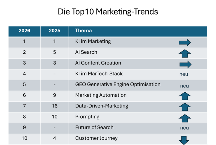 - KI erobert fünf der zehn wichtigsten Marketing-Themen